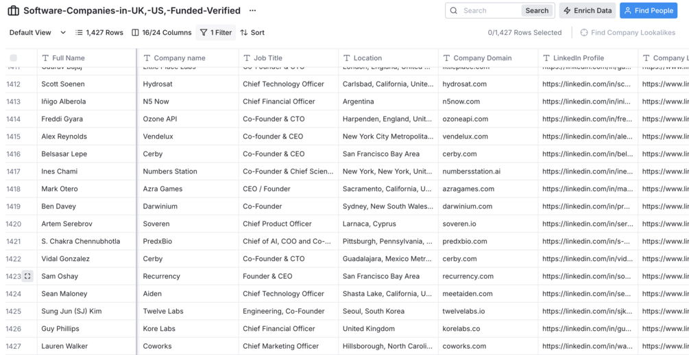 You'll get a lead list of 1,427 UK & US based software companies that have received funding in the past year! All are decision makers with verified email addresses. Feel free to use this list as part of your outreach!
